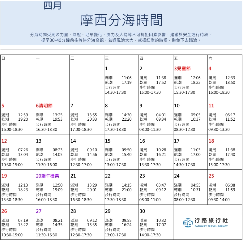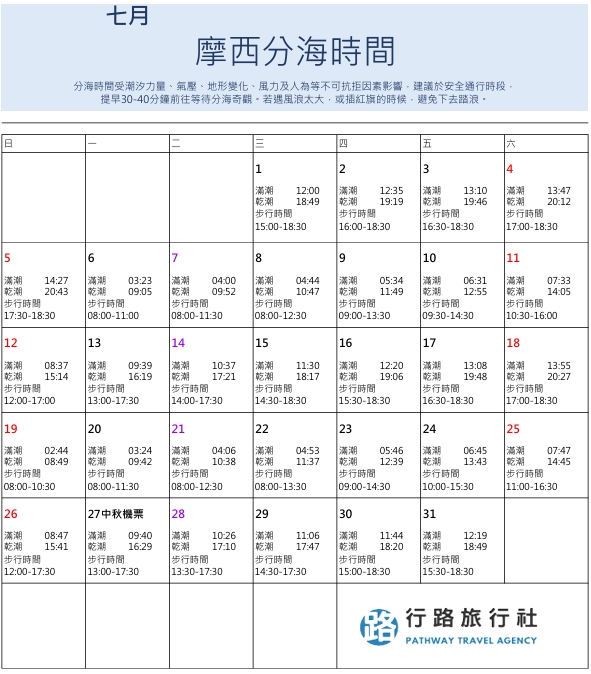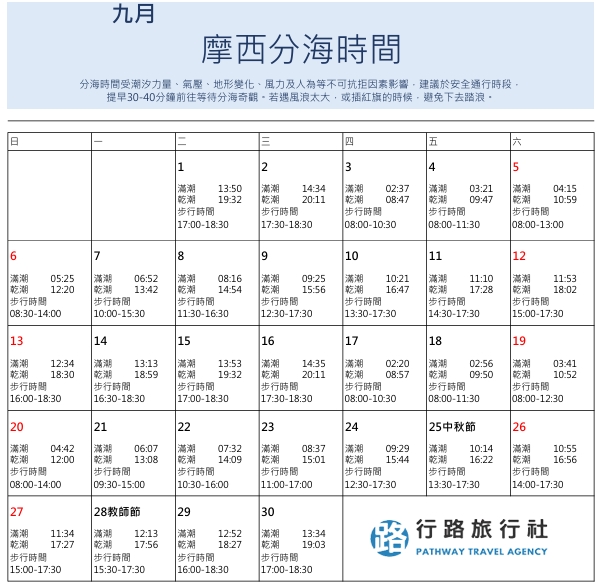 分海時間與安全提醒(重要)